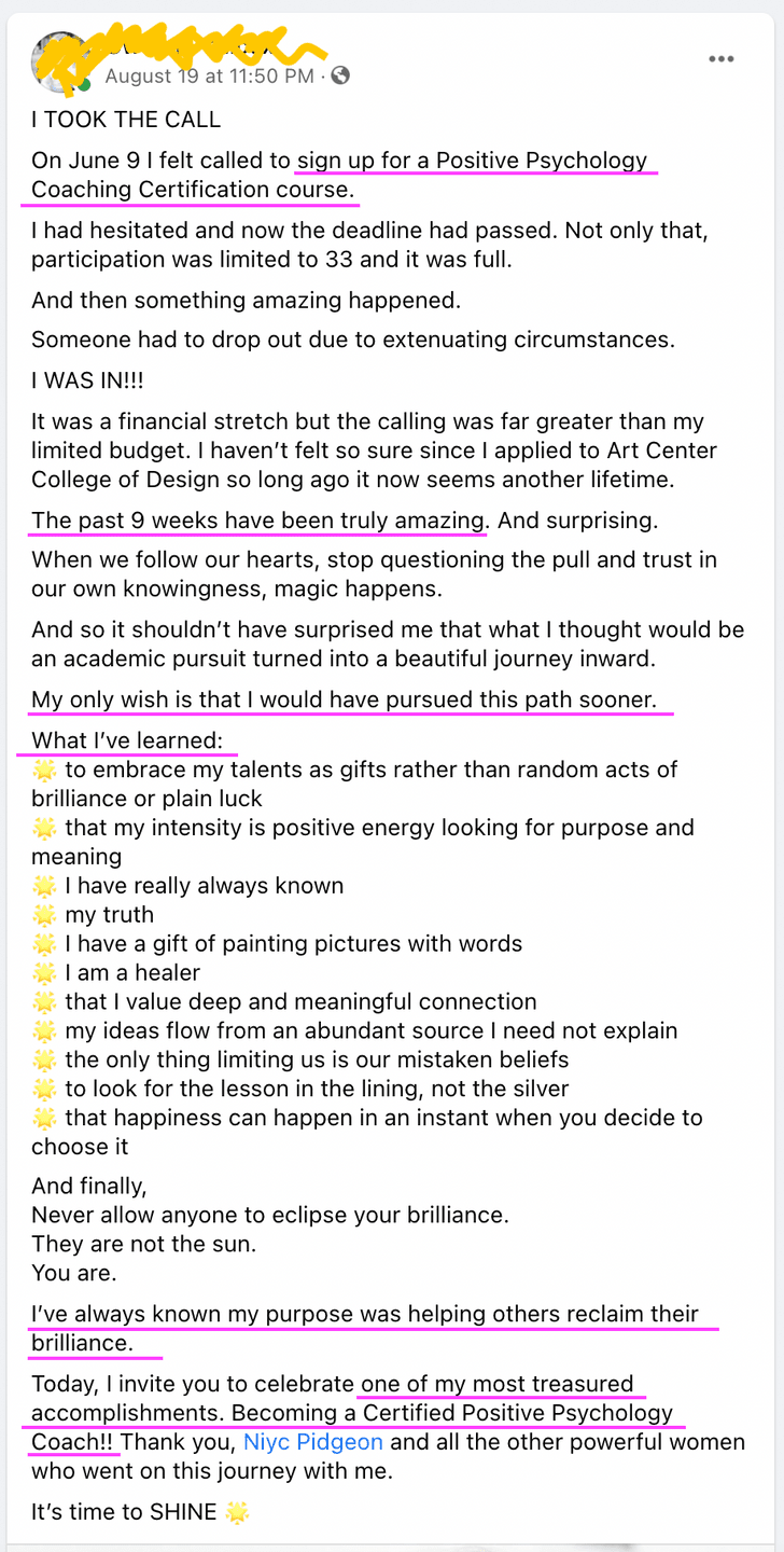 I’ve interviewed Elon Musk, been featured in big media like Forbes, Entrepreneur, and Goop talking about my work in the positive psychology and coaching space, and have been on safari and to Necker Island with Sir Richard Branson.